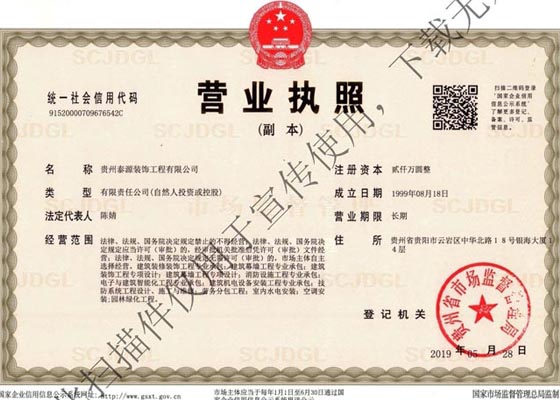 我公司成立于1999年08月18日,注冊資金人民幣2000萬元。企業經過不懈的努力,從當初的幾個人發展到現在幾百人的規模;由過去單一的裝飾施工企業發展為現在以建筑、裝飾、設計為主,兼為實業、建材、地產等多元化的股份制企業,具有建設部頒發的建筑裝修裝飾工程專業承包壹級、建筑裝飾工程設計專項甲級、建筑幕墻裝飾工程專業承包貳級資質、建筑幕墻工程設計乙級資質、消防設施工程專業承包貳級、技防系統工程設計(B等)施工與維修、電子與智能化工程專業承包貳級、機電設備安裝工程專業承包貳級。公司2005年入中國建筑裝飾協會為會員單位,2011年至今為理事單位,2003年加入貴州省建筑裝飾協會為副會長單位,2019年當選為貴州省建筑裝飾協會會長單位。擁有一批優秀的裝飾設計和施工人員,具有承擔大型工程的裝飾、設計能力。     為了提高工程質量,公司于2002年通過ISO9001:2000國際質量體系認證、通過ISO14001:2004環境管理體系認證和GB/T28001:2001職業健康安全管理體系認證。并在承接的工程中認真貫徹執行,由此取得了良好的口碑,增加了公司在競爭市場的生命力。      公司在深抓員工業務知識的同時,更加注重員工的思想教育和職工福利,為此公司于2005年成立了工會組織。經常組織公司員工外出考察,組織員工進行各項專業技術培訓。     公司擁護黨的領導,支持國家建設,先后榮獲貴陽市年度經濟工作“先進單位”和貴州省、市級“守合同、重信用”單位,并獲所在轄區納稅十強企業。     建立現代公司管理制度。公司要做強、做大,必須要有一套完善的管理制度來支撐。因此,公司從成立之初就非常重視公司制度的建立,比照現代大型成功公司的先進管理制度先后制訂了《泰源公司管理制度集》、《施工現場管理制度》、《質量控制程序文件》等一系列行之有效的現代化管理制度。并在制度建立后抓落實、抓執行,使公司各項工作步入到健康有序的發展軌道上。公司始終堅持“以信譽促發展,以管理增效益,以質量求生存,以服務得人心”的經營理念和“誠信守法,團結進取”的方針,不忘初心,砥礪前行,立足貴州,輻射全國,共創更加輝煌的明天。